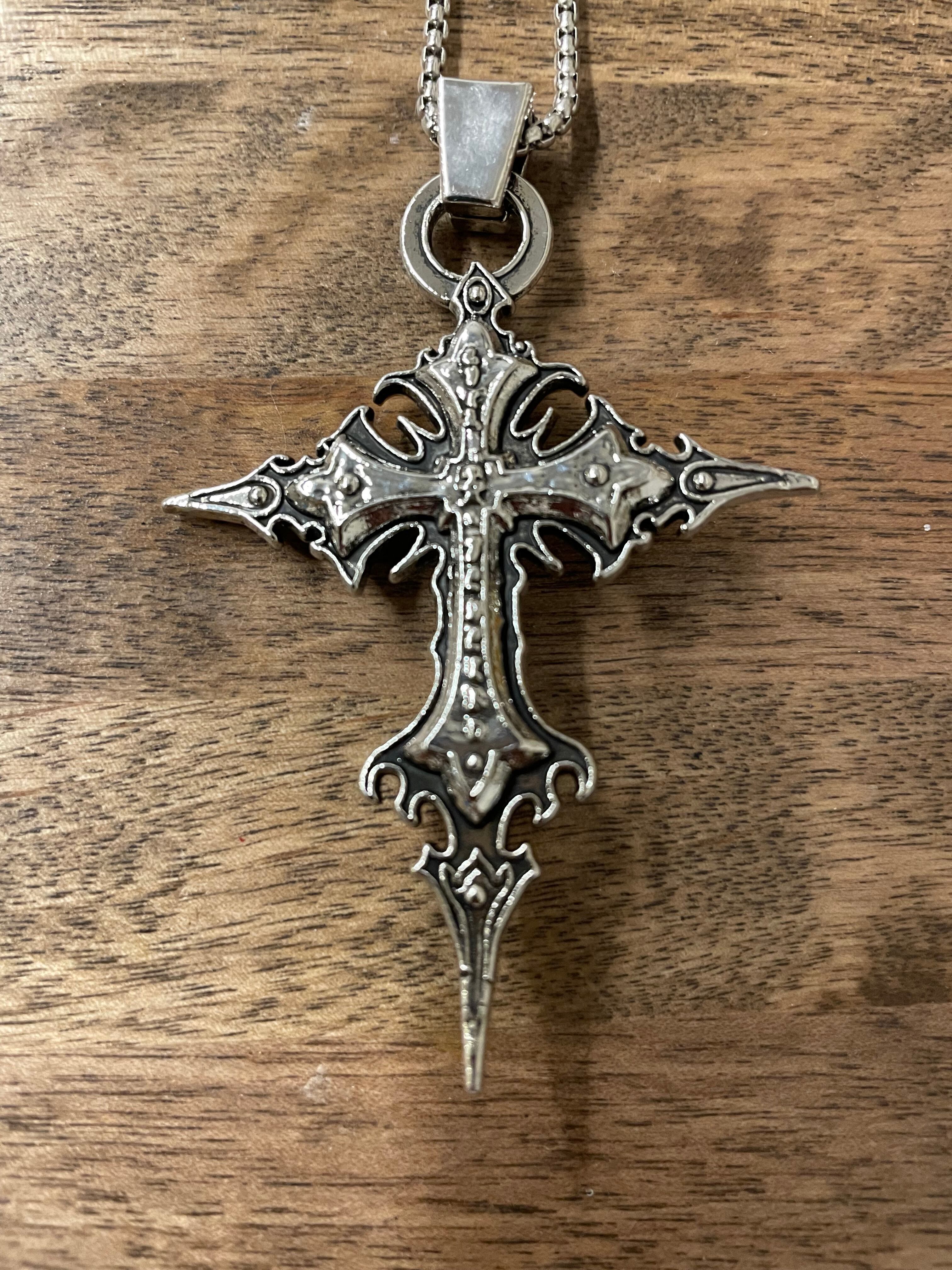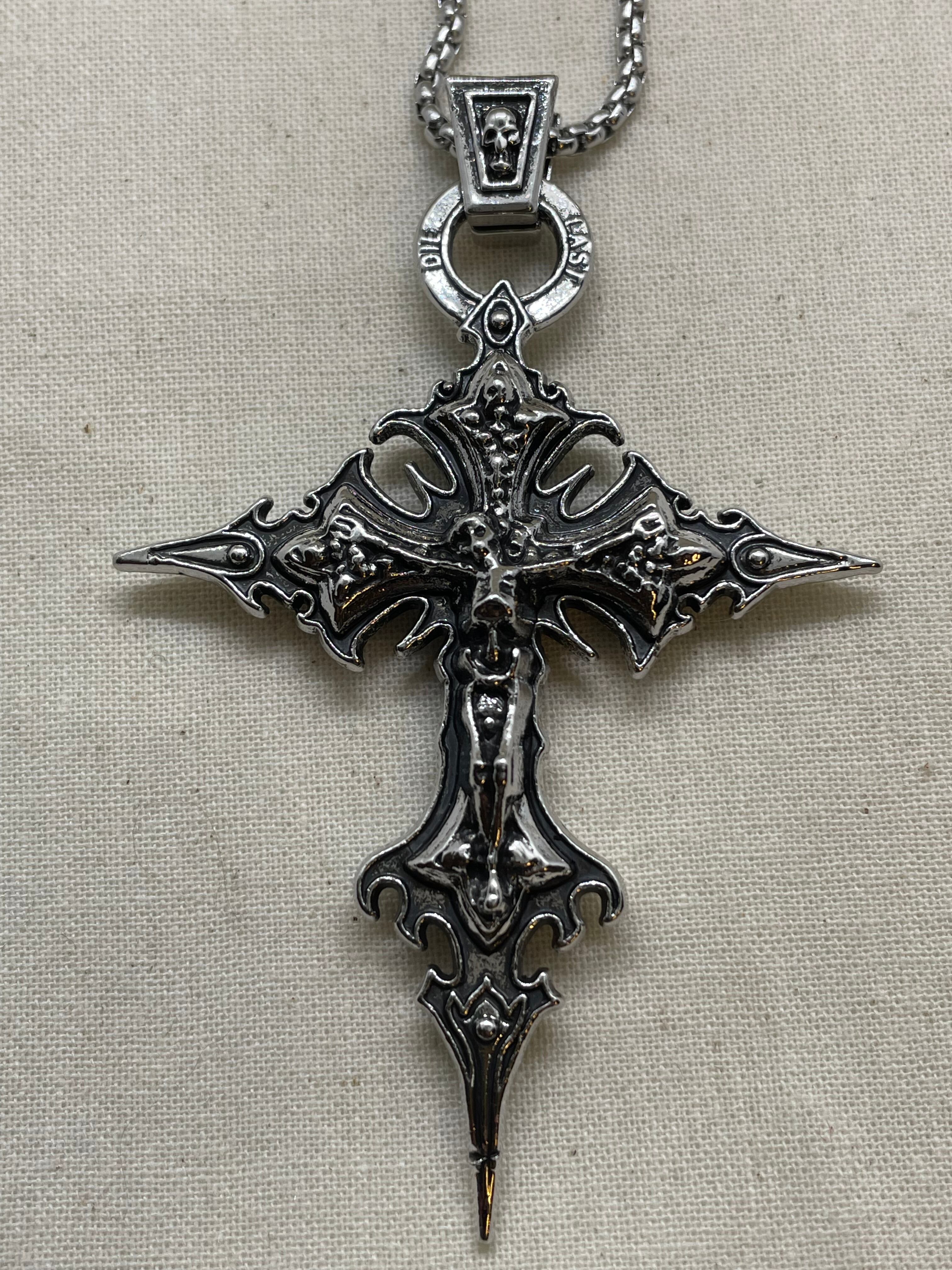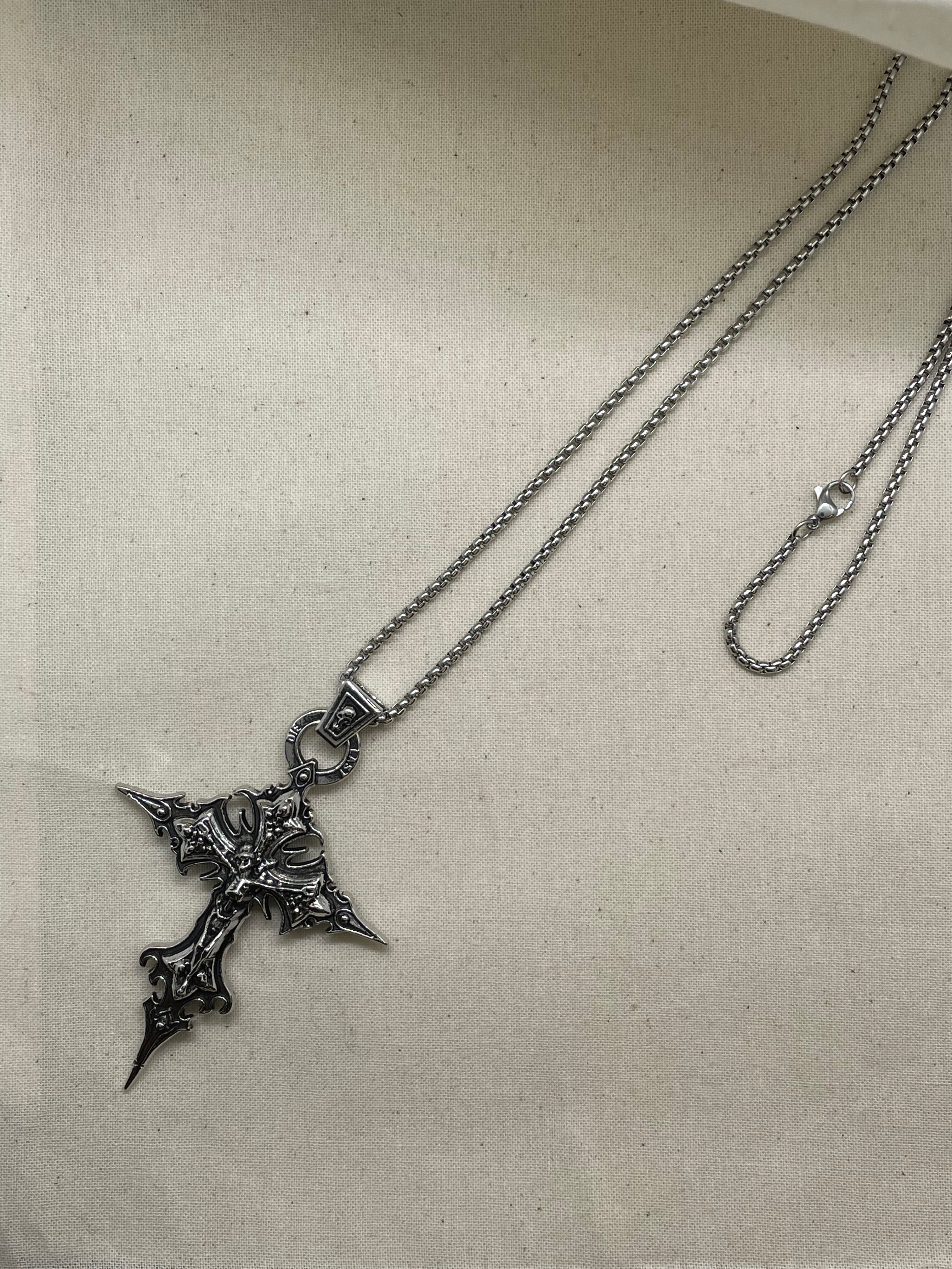 独特な十字架と髑髏をモチーフにした、洗練されたデザインのネックレスです。
